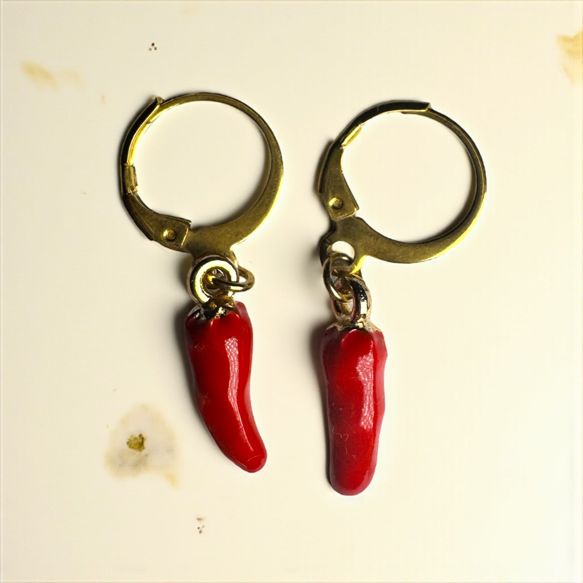 Bring a dash of fiery charm to your look with the Lucky Pepper Hoops. Featuring bold red chilli pepper charms on gold plated stainless steel hoops, these earrings are believed to ward off negativity and attract good fortune. A playful mix of spice and style — perfect for everyday protection with attitude.